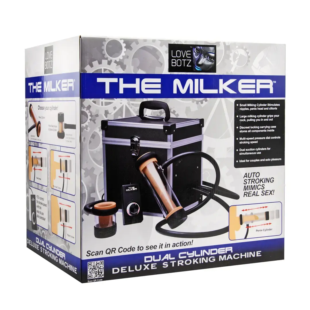 The Milker — это профессиональный всасывающий мастурбатор, разработанный для интенсивной стимуляции. Этот полный комплект включает в себя все необходимое для захватывающего опыта, включая мощный аппарат, несколько цилиндров и точные настройки управления.